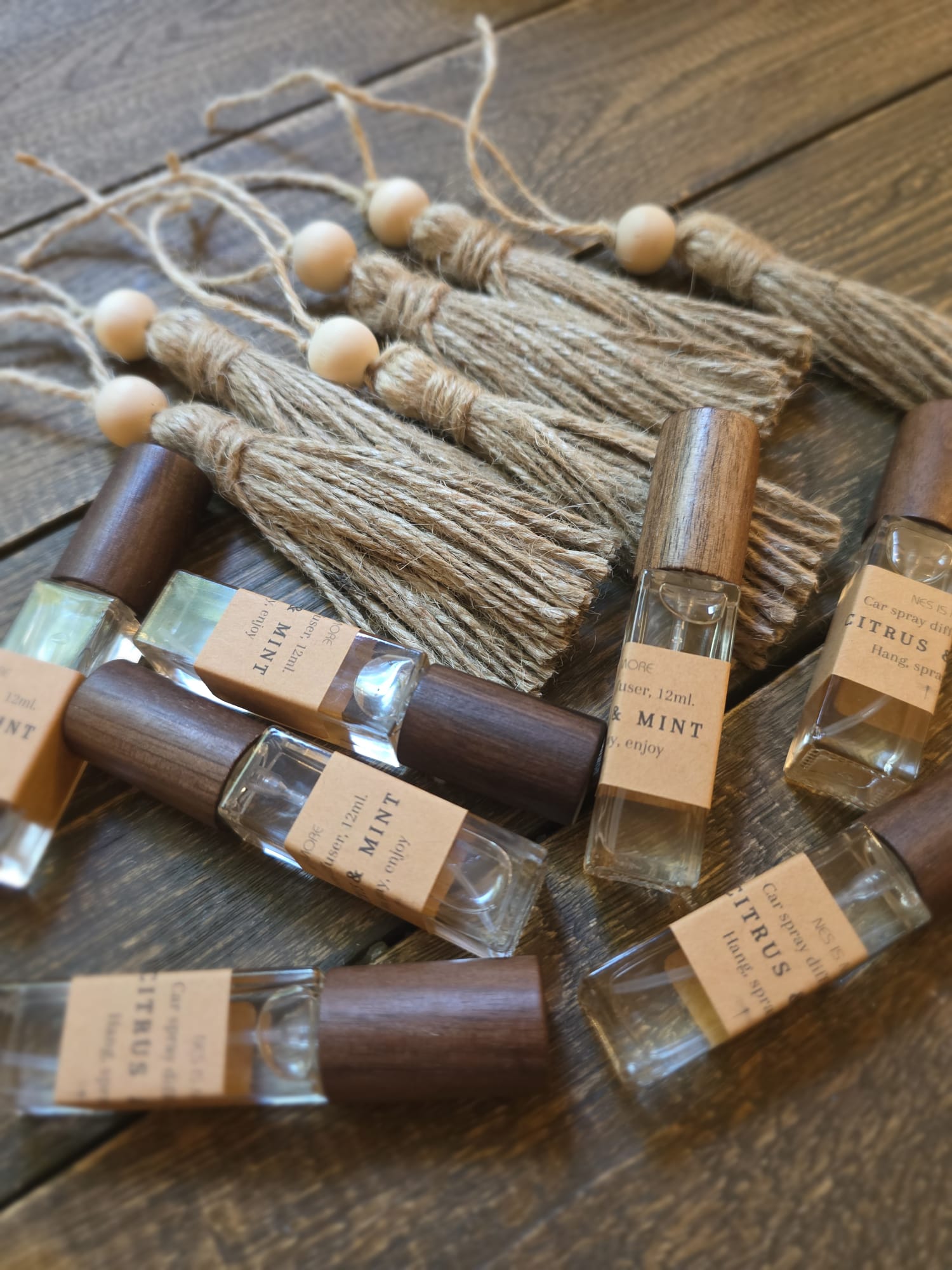 מבשם אויר לרכב המורכב משני חלקים: בקבוקון ספריי + אלמנט קישוט לתליה עליו מתיזים. המבשם מבוסס על חומר אקולוגי וידידותי לסביבה אשר לא מזהם את האויר בעת האידוי. הוא נוח וחסכוני - מרססים רק בעת צורך. הריח מרענן ולא חונק של הדרים נקיים ומנטה קרירה, שילוב אופטימלי לשמירה על פוקוס בעת נהיגה. המבשם מעוצב במראה טבעי ואלגנטי שמתמזג עם פנים הרכב, מגיע בתוך שקית כותנה