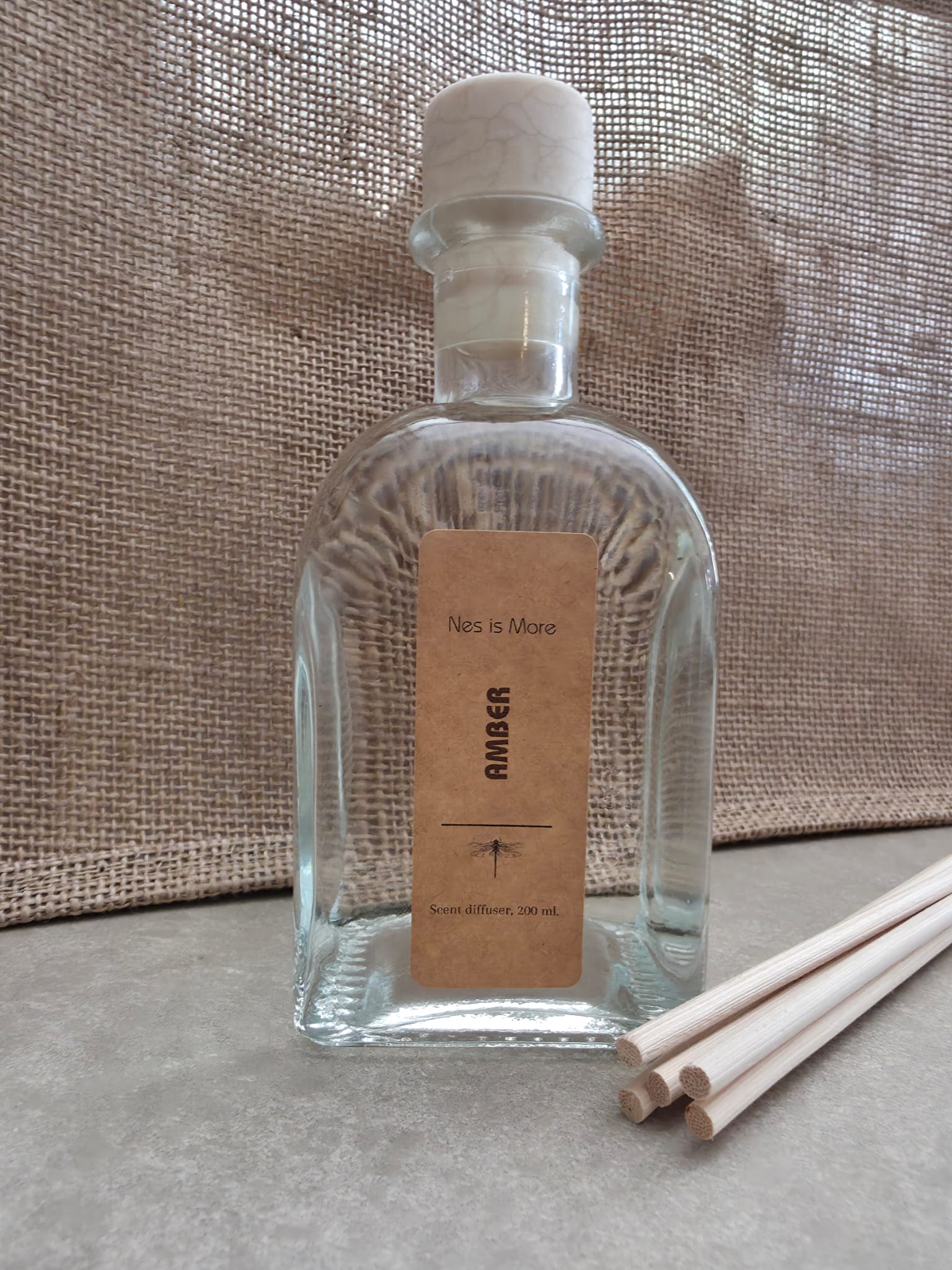 המפיץ מגיע בתוף בקבוק שקוף בתוספת 5 קני עץ או כותנה ארוזים בקופסת קרטון בגודל 20*8*8 ס"מ
